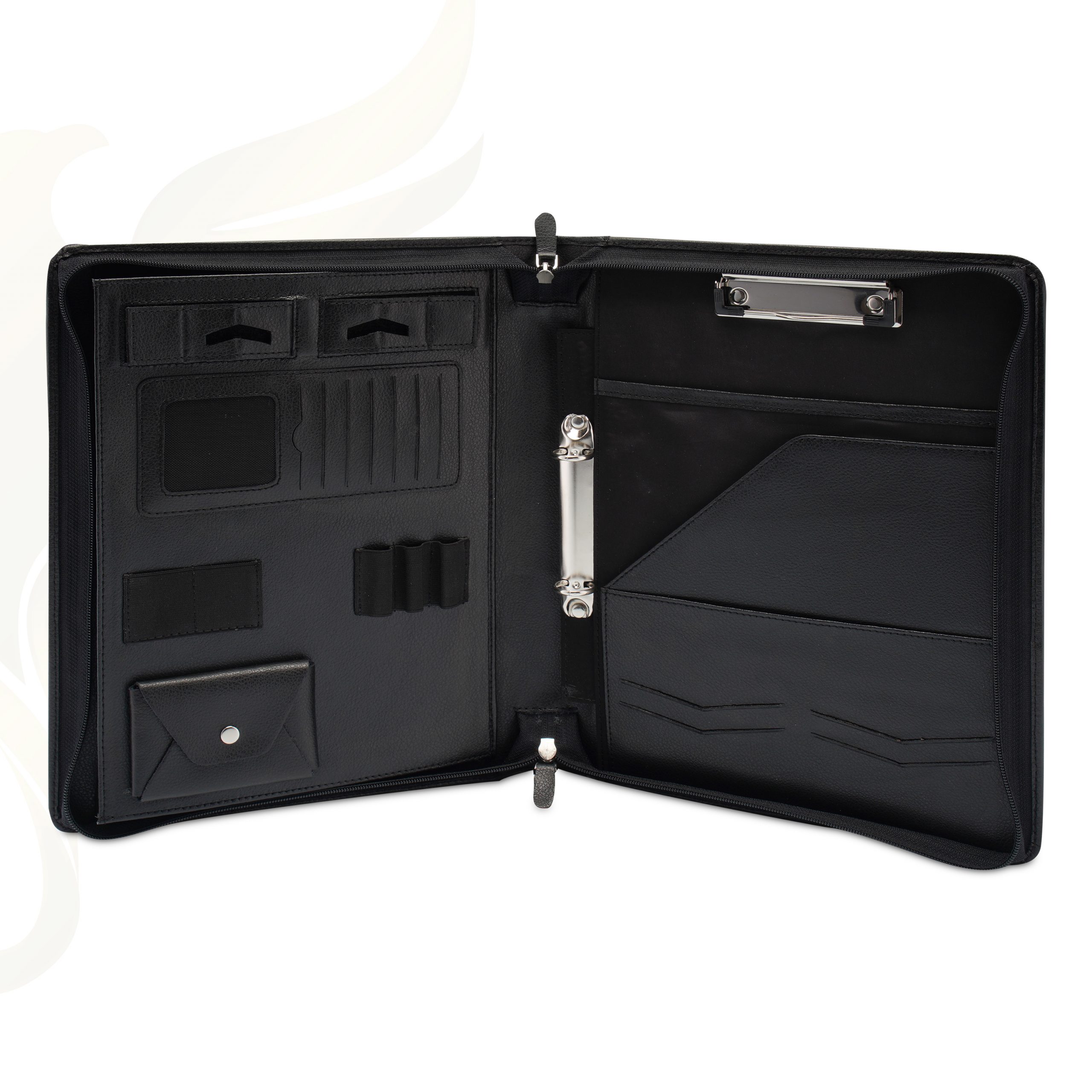 - Mehrere Fächer für Dokumente, Visitenkarten und Stifte.
